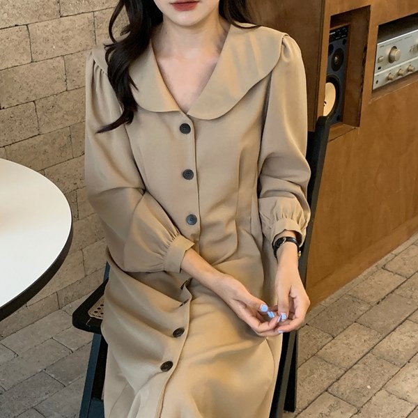 - 브이넥 웨이브카라 단추 롱원피스 ZZ13432