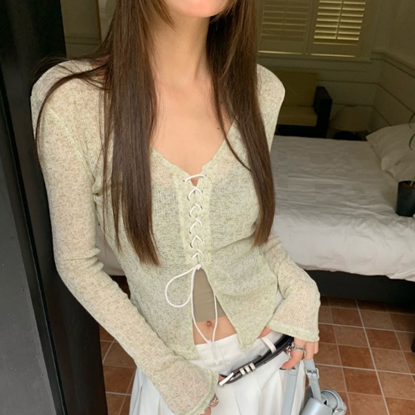 - (가디건세트)레이스업 슬림핏 가디건+이너 나시 세트 2J112548E