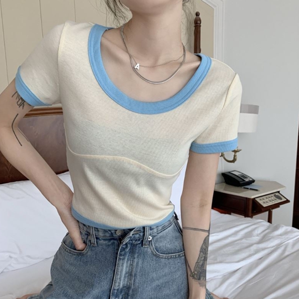 - 배색라인 슬림핏 반팔 티셔츠 ZZ17367