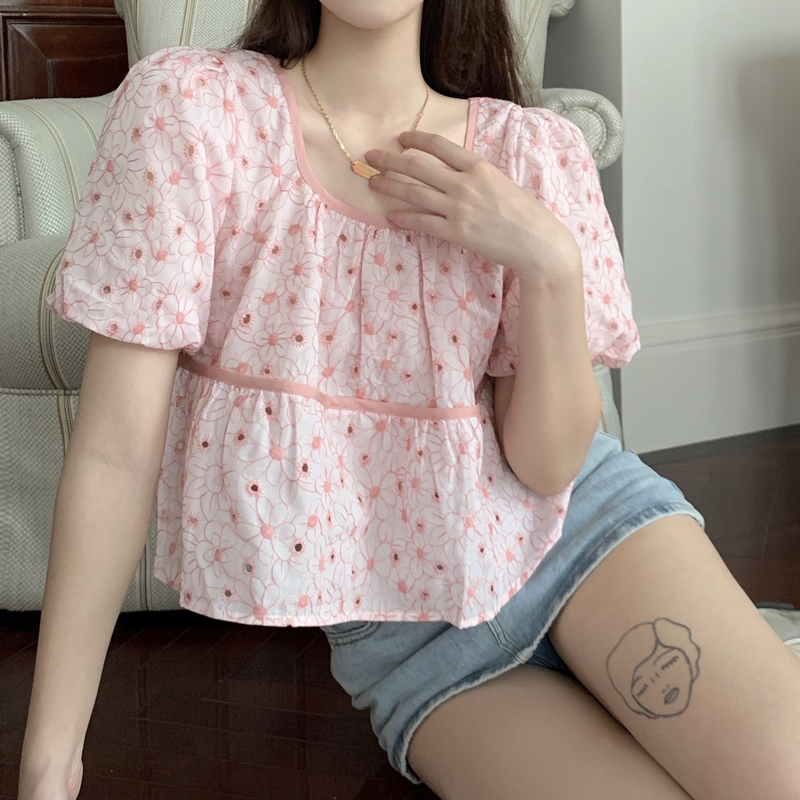 - 플라워 패턴 U넥 셔츠 ZZ20019cc